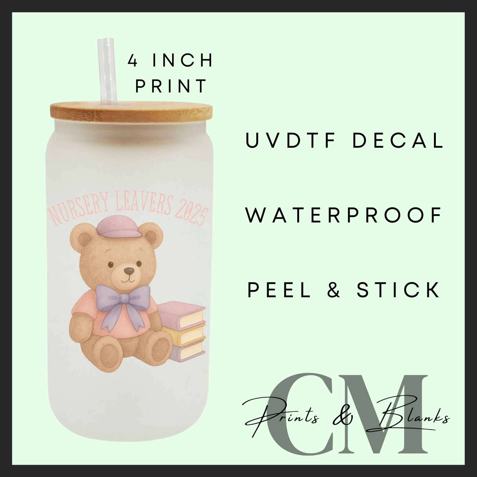 pink nursery leavers Uvdtf single decal (4”, 10cm)