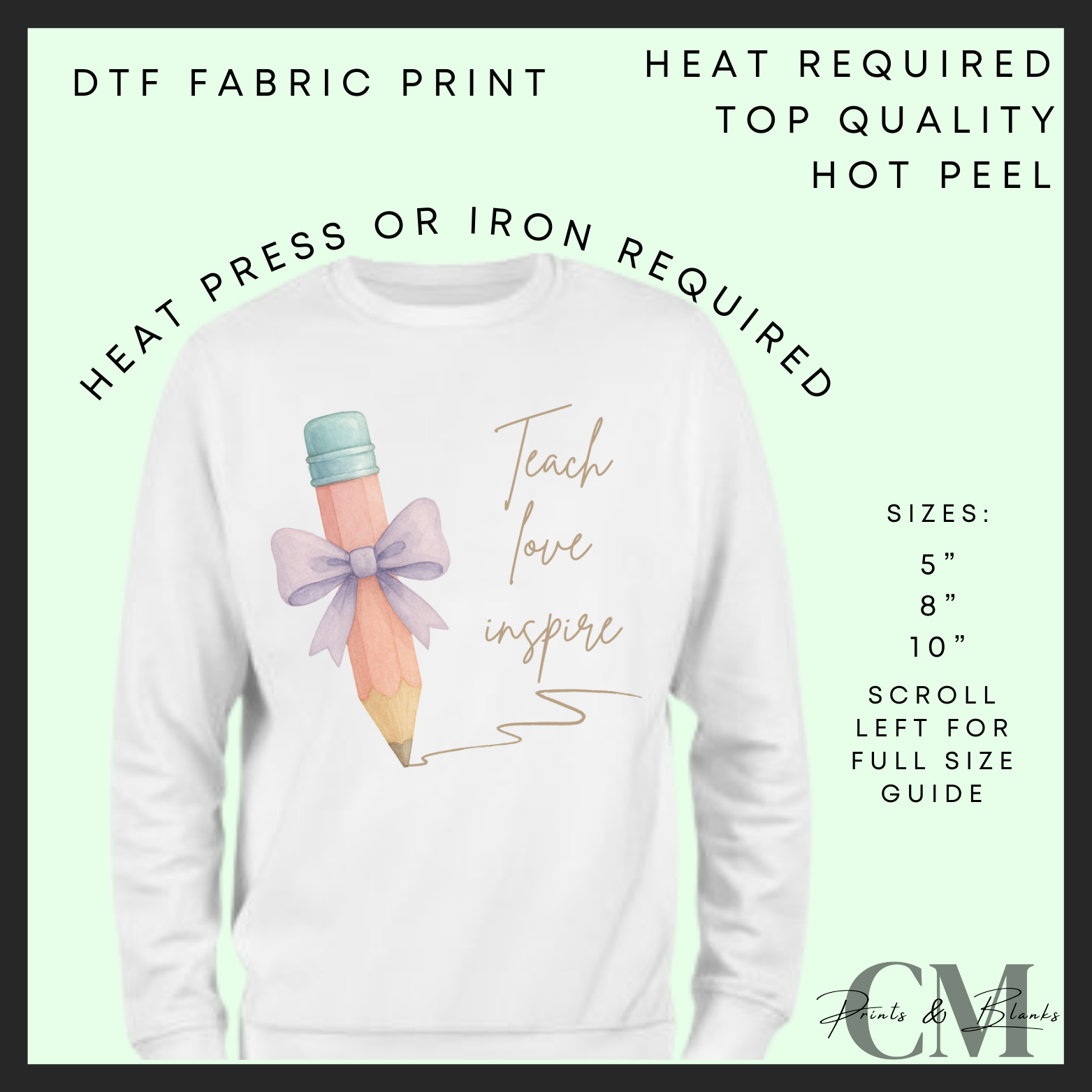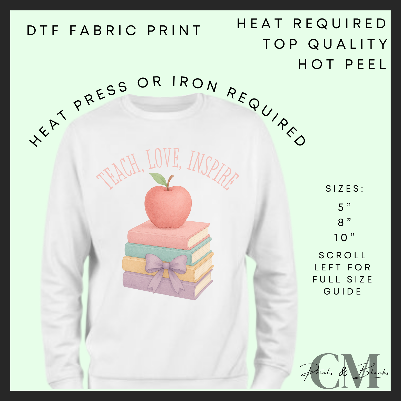 Teach, love, inspire pink books DTF transfer