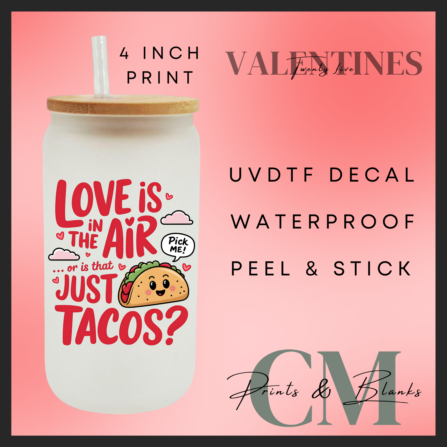 Love is in the air, tacos Uvdtf single decal (4” / 10cm)